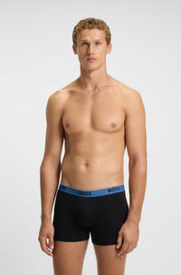 SIZE AND FIT The model wears a size M and is 6'2" tall with a, 36" chest, 31" waist and 38" hips. DETAILS Featuring repeat logos and signature stripes around the waistband, this trio of BOSS Menswear boxer briefs is cut in comfy stretch cotton. Regular rise. Packaging: Box Exposed waistband Regular rise BoxerBr 3P Power - 50554694 QUALITY & CARE INSTRUCTIONS Do Not Bleach Do Not Dry Clean Tumble Dry Low Heat Material: 95% Cotton, 5% Elastane, Waistband: 58% Polyamid, 29% Polyester, 13% Elastane Machine Wash Warm Iron Medium Heat