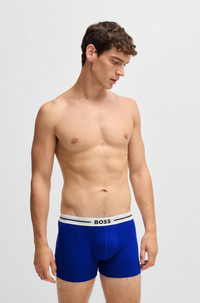 SIZE AND FIT The model wears a size M and is 6'1" tall with a, 37" chest, 30" waist and 37" hips. DETAILS BoxerBr 3P Bold - 50531702 Three pairs of everyday boxer briefs in soft stretch jersey. This pack contains multiple color options, each with a bold logo and stripe waistband. This product is partly made with cotton. Packaging: Box Exposed waistband Regular rise QUALITY & CARE INSTRUCTIONS Do Not Bleach Do Not Dry Clean Machine Wash Warm Tumble Dry Low Heat Iron Low Heat Quality: 95% Cotton, 5% Elastane, Waistband: 59% Polyamid, 28% Polyester, 13% Elastane