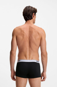 SIZE AND FIT The model wears a size M and is 6'2" tall with a, 41" chest, 33" waist and 40" hips. DETAILS Invest in classic everyday comfort with these three pairs of BOSS Menswear trunks. Cut in stretch cotton with repeat-logo, regular-rise waistbands. Packaging: Box Exposed waistband Regular rise Trunk 3P Power - 50554693 QUALITY & CARE INSTRUCTIONS Do Not Bleach Do Not Dry Clean Tumble Dry Low Heat Material: 95% Cotton, 5% Elastane, Waistband: 53% Polyamid, 34% Polyester, 13% Elastane Machine Wash Warm Iron Medium Heat
