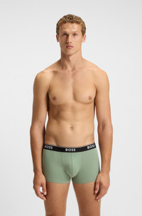 SIZE AND FIT The model wears a size M and is 6'2" tall with a, 36" chest, 31" waist and 38" hips. DETAILS Invest in classic everyday comfort with these three pairs of BOSS Menswear trunks. Cut in stretch cotton with repeat-logo, regular-rise waistbands. Packaging: Box Exposed waistband Regular rise Trunk 3P Power - 50554693 QUALITY & CARE INSTRUCTIONS Material: 95% Cotton, 5% Elastane, Waistband: 53% Polyamid, 34% Polyester, 13% Elastane Do Not Bleach Machine Wash Warm Tumble Dry Low Heat Do Not Dry Clean Iron Medium Heat
