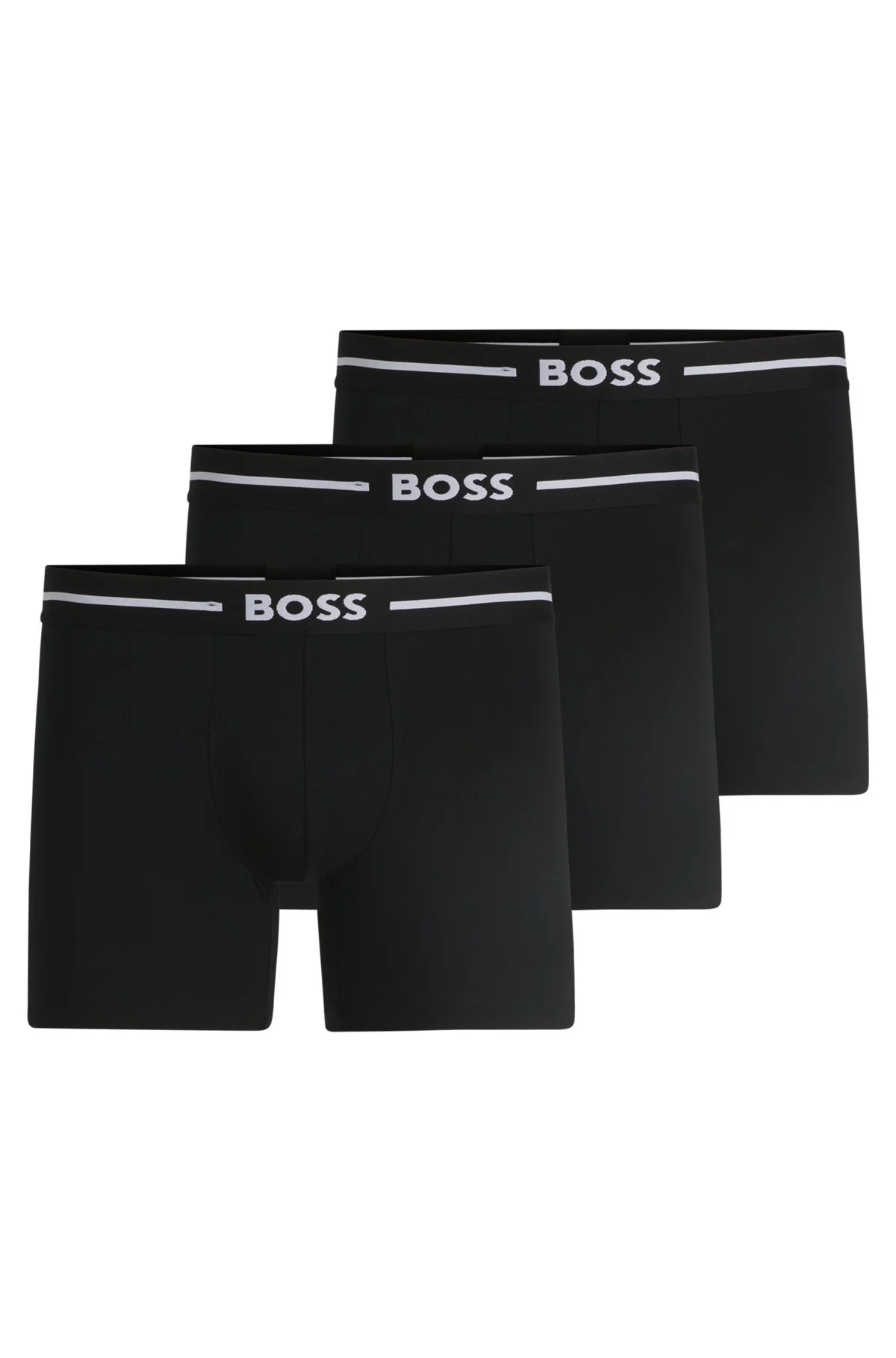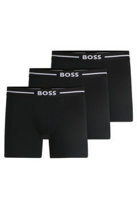 SIZE AND FIT The model wears a size M and is 6'2" tall with a, 36" chest, 31" waist and 38" hips. DETAILS BoxerBr 3P Bold - 50510698 Stock up on your essentials with this handy triple-pack of boxer briefs from BOSS Menswear. Soft and breathable stretch jersey for everyday comfort. Packaging: Box Exposed waistband Regular rise QUALITY & CARE INSTRUCTIONS Do Not Bleach Tumble Dry Low Heat Do Not Dry Clean Quality: 95% Cotton, 5% Elastane, Waistband: 57% Polyamid, 30% Polyester, 13% Elastane Iron Low Heat Machine Wash Warm