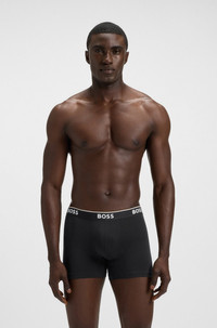 SIZE AND FIT The model wears a size M and is 6'2" tall with a, 0" chest, 28" waist and 36" hips. DETAILS BoxerBr 3P Power - 50475282 Three pairs of boxer briefs by BOSS. Crafted in soft cotton blended with a touch of stretch to offer ultimate comfort, these boxer briefs are topped with an exposed waistband that sits at a regular rise. A signature stripe and repeat BOSS branding complete each pair. Packaging: Box Exposed waistband Regular rise QUALITY & CARE INSTRUCTIONS Quality: 95% Cotton, 5% Elastane Iron Medium Heat Do Not Bleach Machine Wash Warm Tumble Dry Low Heat Do Not Dry Clean