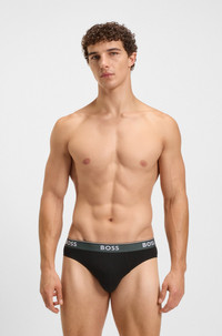 SIZE AND FIT The model wears a size M and is 6'0" tall with a, 38" chest, 29" waist and 38" hips. DETAILS Three pairs of briefs with a signature stripe and branding on the waistband by BOSS Menswear. Each regular-rise pair is crafted in comfortable stretch cotton. Brief 3P Power - 50531681 QUALITY & CARE INSTRUCTIONS Machine Wash Warm Do Not Dry Clean Do Not Bleach Iron Medium Heat Quality: 95% Cotton, 5% Elastane Tumble Dry Low Heat