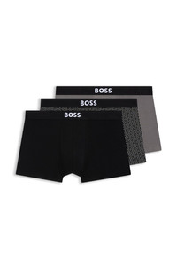 SIZE AND FIT The model wears a size M and is 6'2" tall with a, 36" chest, 31" waist and 38" hips. DETAILS Featuring logo waistbands and flexible stretch-cotton jersey, these three pairs of BOSS Menswear trunks are everyday musts. Plain and printed designs. Packaging: Box Exposed waistband Regular rise Trunk 3P BOSS ONE D - 50549832 QUALITY & CARE INSTRUCTIONS Material: 95% Cotton, 5% Elastane, Waistband: 57% Polyamid, 30% Polyester, 13% Elastane Do Not Dry Clean Machine Wash Warm Iron Low Heat Do Not Bleach Tumble Dry Low Heat