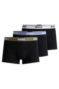 SIZE AND FIT The model wears a size M and is 6'1" tall with a, 38" chest, 31" waist and 37" hips. DETAILS Trunk 3P Power - 50517827 Three pairs of essential trunks by BOSS. Each regular-rise pair is crafted in stretch-cotton jersey and topped with a repeat-logo waistband. Packaging: Box Exposed waistband Regular rise QUALITY & CARE INSTRUCTIONS Do Not Bleach Tumble Dry Low Heat Iron Medium Heat Do Not Dry Clean Quality: 95% Cotton, 5% Elastane, Waistband: 58% Polyamid, 29% Polyester, 13% Elastane Machine Wash Warm