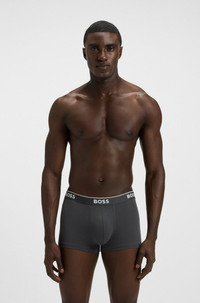 SIZE AND FIT The model wears a size M and is 6'2" tall with a, 0" chest, 28" waist and 36" hips. DETAILS Trunk 3P Power - 50475274 A trio of modern trunks by BOSS. Packaging: Box Exposed waistband Regular rise QUALITY & CARE INSTRUCTIONS Do Not Bleach Tumble Dry Low Heat Iron Medium Heat Do Not Dry Clean Quality: 95% Cotton, 5% Elastane Machine Wash Warm