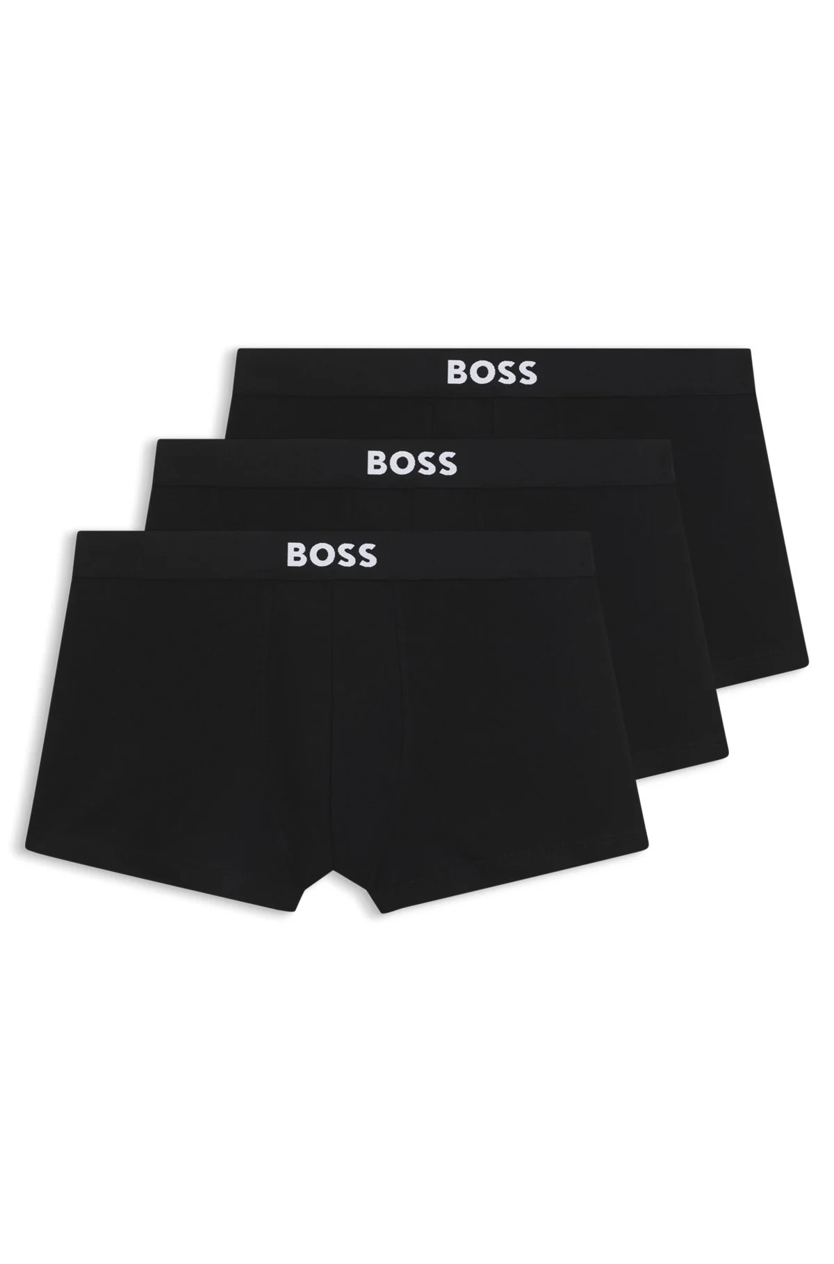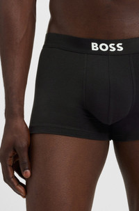 SIZE AND FIT The model wears a size M and is 6'2" tall with a, 37" chest, 30" waist and 36" hips. DETAILS Trunk 3P BOSS ONE - 50544263 This trio of BOSS Menswear trunks is the ideal way to replenish your everyday basics. Comfortable stretch-cotton jersey. Timeless branded regular-rise waistbands. As seen on David Beckham in the new BOSS ONE underwear/bodywear campaign Packaging: Box Exposed waistband Regular rise QUALITY & CARE INSTRUCTIONS Iron Low Heat Machine Wash Warm Do Not Bleach Quality: 95% Cotton, 5% Elastane, Waistband: 57% Polyamid, 30% Polyester, 13% Elastane Tumble Dry Low Heat Do Not Dry Clean