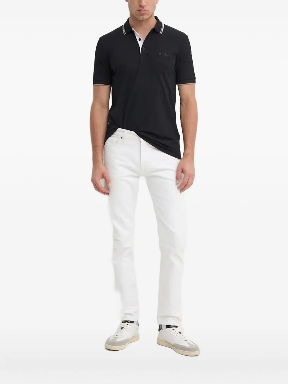 tipped collar polo shirt Highlights - Black - Tipped collar - Short sleeves - Embroidered logo - Button fastening Imported Composition Cotton 56%, Recycled Polyester 39%, Elastane 5% Washing instructions Read Manufacturer Guidelines