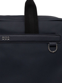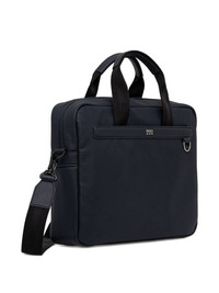 top-handle laptop bag Highlights - Navy blue - Top handle - Detachable shoulder strap - Zip fastening - Silver-tone hardware - Front logo detail Imported Composition Outer: Polyurethane 60%, Polyester 40% SIZE & FIT Measurement DEPTH 3.54 in(9 cm) HEIGHT 11.41 in(29 cm) WIDTH 15.35 in(39 cm)