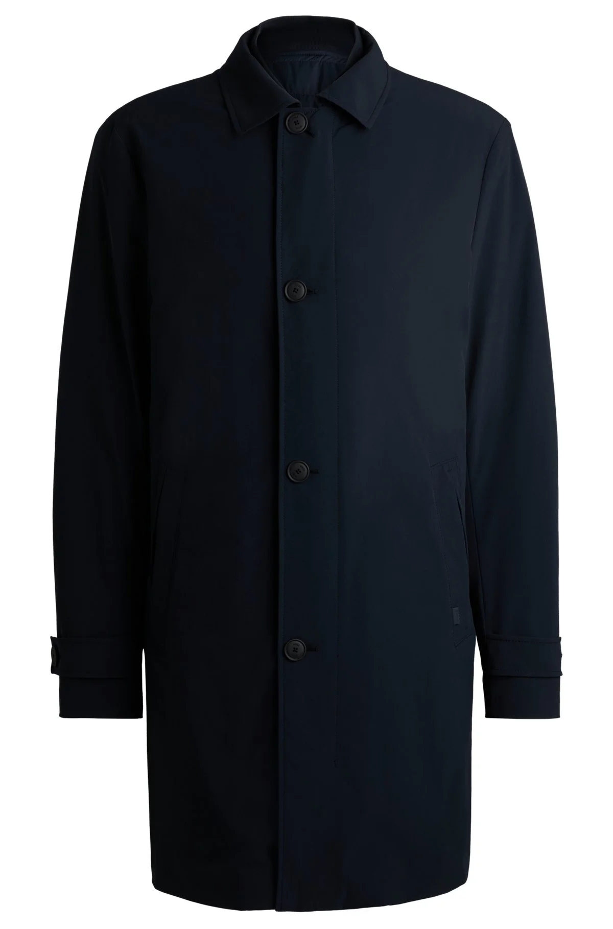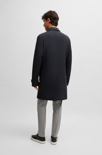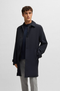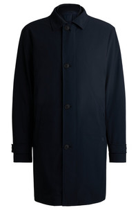 SIZE AND FIT The model wears a size EU:98 and is 6'1" tall with a, 37" chest, 29" waist and 35" hips. DETAILS P-Jared-3in1-251F - 50535379 Featuring a detachable inner gilet for versatility, this BOSS Menswear coat is a travel essential. Stretch softshell fabric for comfort. Machine washable. Regular fit. QUALITY & CARE INSTRUCTIONS very mild professional wet clean Quality: 88% Polyamide, 12% Elastane, Lining: 100% Polyamid, Waistcoat: 100% Polyester, Collar: 99% Polyamid, 1% Elastane, Wadding: 100% Polyester Do Not Tumble Dry Do Not Bleach Do Not Iron Do Not Wash Do Not Dry Clean