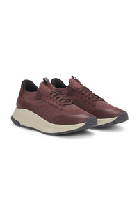 DETAILS TTNM EVO_Slon_knrsd - 50523113 Crafted in a combination of materials, including leather trims, these running-style BOSS Menswear trainers strike a distinctive profile. Lightweight ridged outsole. Knitted uppers for enhanced comfort and fit. Laces Partially lined Packaging: Box QUALITY & CARE INSTRUCTIONS Upper material: 100% Polyester (85% recycled), Lining: 100% Polyester (85% recycled), 100% Polyester, 85% Polyester, 15% Polyurethane, Sole: 70% Ethylene vinyl acetate, 30% Rubber, Facing: 100% Thermoplastic polyurethane , 100% Cow leather, Innersole: 100% Polyester
