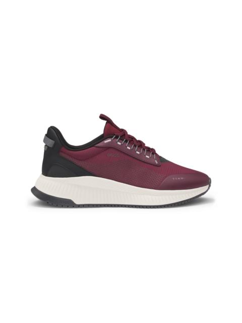 DETAILS TTNM EVO_Runn_rsth - 50529544 Modern TTNM EVO trainers with a distinctive ribbed outsole by BOSS. This ultra-lightweight pair features thermo-bonded uppers and branding throughout. Laces Fully lined Packaging: Box QUALITY & CARE INSTRUCTIONS Upper material: 100% Polyester, Lining: 100% Polyester, 85% Polyester, 15% Polyurethane, Sole: 70% Ethylene vinyl acetate, 30% Rubber, Facing: 100% Thermoplastic polyurethane , 60% Polyester, 40% Polyurethane, Innersole: 100% Polyester