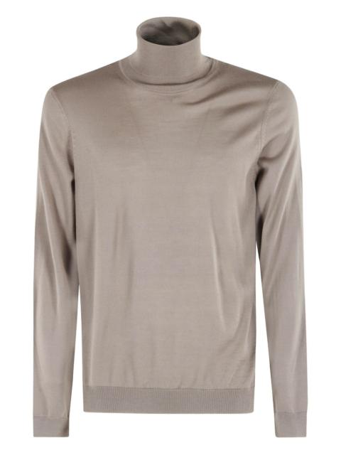 turtleneck ribbed sweater Highlights - Blue - High neck - Long sleeves - Ribbed cuffs Imported Composition Virgin Wool 100% Washing instructions Machine Wash
