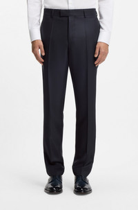 SIZE AND FIT The model wears a size 38R and is 6'1" tall with a, 36" chest, 29" waist and 36" hips. DETAILS With its subtle pattern and regular fit, this two-piece BOSS Menswear suit is a solid workwear and event option. Virgin wool with soft silk. Regular fit Notched lapels Number of buttons: 2 Jetted chest pockets Pockets top: Flap pockets Kissing buttons on the cuff Fully lined Fit back length: 74 cm (29 inches) L-Jarrod-2Pcs-241 - 50558486 QUALITY & CARE INSTRUCTIONS Material: 85% Virgin wool, 15% Silk, Lining: 100% Cupro, pocketing: 100% Cotton, knee lining: 100% Viscose Do Not Bleach Do Not Wash Reduced Dry Clean Do Not Tumble Dry Iron Medium Heat