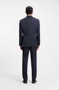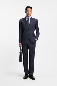 SIZE AND FIT The model wears a size 38R and is 6'1" tall with a, 36" chest, 29" waist and 36" hips. DETAILS Update your business collection with this two-piece BOSS Menswear suit. With a subtle Panama weave that's easy to style, this refined suit is crafted in virgin wool blended with silk for a soft feel. Featuring constructed shoulders and full lining, the straight fit offers room to move. Regular fit Notched lapels Fastening top: Button closure Number of buttons: 2 Welt chest pockets Pockets top: Flap pockets Inside welt pockets Kissing buttons on the cuff Fully lined Hook and zip closure Pockets bottom front: Side slash pockets Pockets bottom back: Jetted pockets H-Jeckson-2Pcs-253 - 50557263 QUALITY & CARE INSTRUCTIONS Do Not Tumble Dry Iron Medium Heat Do Not Bleach Material: 80% Virgin wool, 20% Silk, Lining: 100% Viscose, Sleeve lining: 100% Viscose, knee lining: 100% Viscose Do Not Wash Reduced Dry Clean