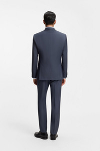DETAILS Woven with an understated pattern, this BOSS Menswear suit will quickly become a formal favorite. Tailored to a slim fit with a double-breasted jacket and constructed shoulders, this suit is crafted in 100% virgin wool with a rich, soft touch. The cloth offers natural stretch for comfort in movement. Slim fit Peaked lapels Fastening top: Button closure Number of buttons: 4 or more buttons Welt chest pockets Pockets top: Flap pockets Inside welt pockets Kissing buttons on the cuff Fully lined Hook and zip closure Pockets bottom front: Side slash pockets Pockets bottom back: Jetted pockets H-Huge-2pcs-DB-254 - 50557266 QUALITY & CARE INSTRUCTIONS Do Not Bleach Do Not Tumble Dry Do Not Wash Iron Medium Heat Material: 100% Virgin wool, Lining: 100% Viscose, Sleeve lining: 100% Viscose, knee lining: 100% Viscose Reduced Dry Clean