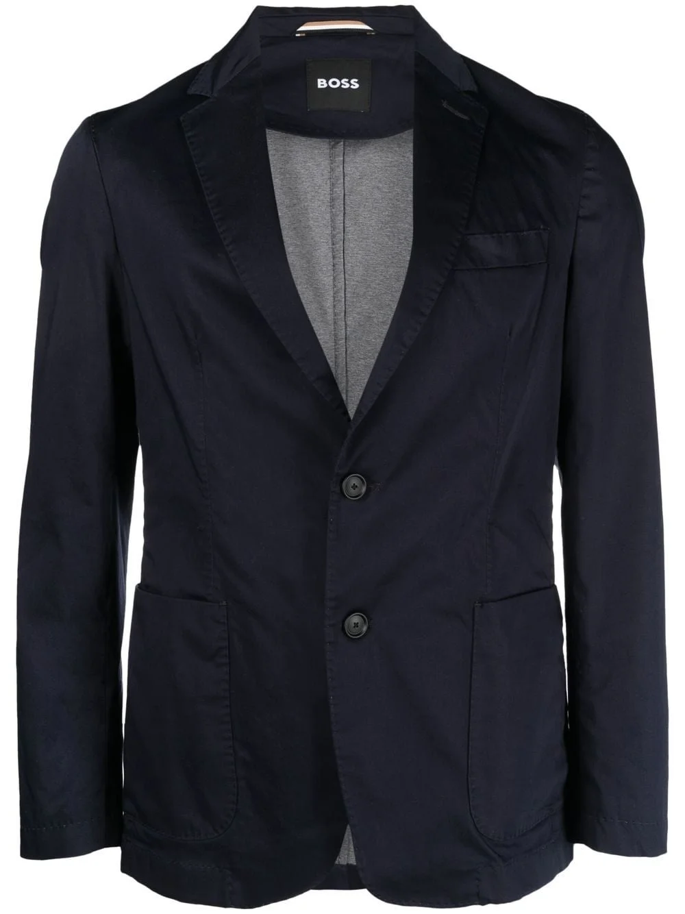 V-neck classic blazer navy blue cotton blend plunging V-neck notched lapels front button fastening two front patch pockets chest patch pocket English rear vents buttoned-cuff sleeves straight hem Imported Composition Outer: Cotton 63%, Polyamide 17%, Polyester 16%, Elastane 4% Lining: Polyester 100% SIZE & FIT Model measurements Height 6 ft 0 in(1.84 m) Bust/Chest 36.22 in(92 cm) Hips 35.43 in(90 cm) Waist 26.77 in(68 cm) FittingInformation Designed for a slim fit, offering a comfortable fit that sits just away from the body The vented hem offers movement at the rear Made from a lightweight stretch fabric, this piece offers elasticity and flexibility when worn This piece fits true to size – take your usual size Washing instructions Dry Clean Only