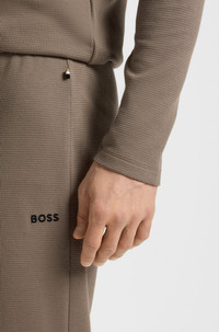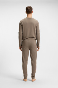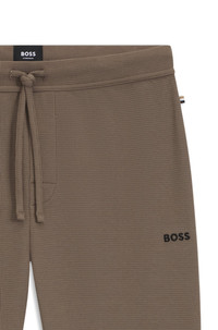 SIZE AND FIT The model wears a size M and is 6'1" tall with a, 38" chest, 29" waist and 37" hips. DETAILS Waffle Pants Cuff - 50535878 Waffle-structure pajama bottoms in a soft blend by BOSS Menswear. This cuffed pair has a drawcord waist and embroidered branding. Covered waistband Drawstring QUALITY & CARE INSTRUCTIONS Do Not Bleach Iron Medium Heat Quality: 60% Cotton, 40% Polyester Do Not Dry Clean Tumble Dry Low Heat Machine Wash Cold