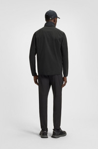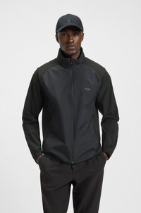 SIZE AND FIT The model wears a size M and is 6'0" tall with a, 36" chest, 31" waist and 35" hips. DETAILS J_Putt - 50533773 Crafted in super-stretch protective poplin, this hooded BOSS Menswear jacket is ideal for unpredictable days on the course. Secure zipped pockets. Decorative reflective accents. Fit back length: 73 cm (29 inches) QUALITY & CARE INSTRUCTIONS Machine Wash Cold Gentle very mild professional wet clean Do Not Tumble Dry Do Not Dry Clean Quality: 100% Elastomultiester, Front panel: 100% Polyester Iron Low Heat Do Not Bleach