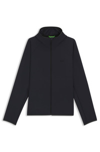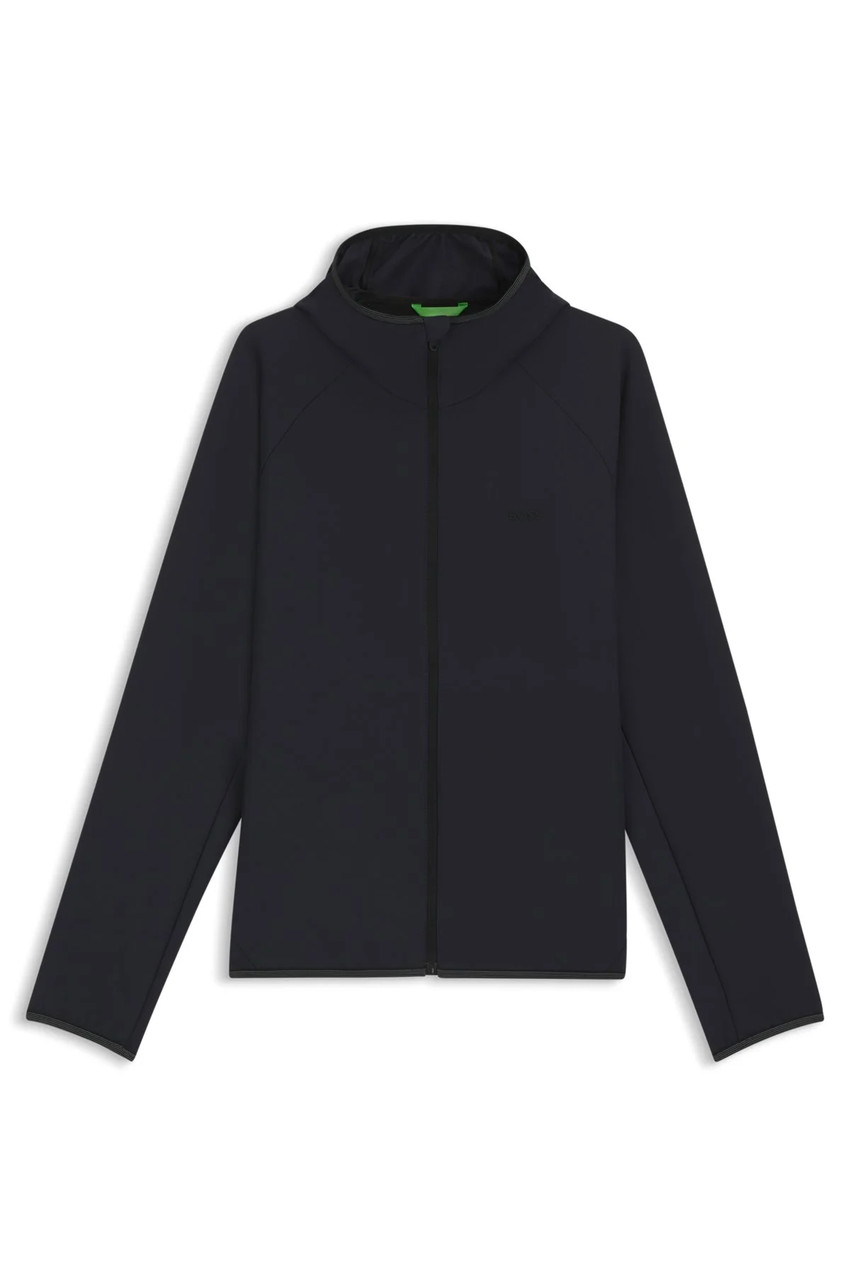 SIZE AND FIT The model wears a size M and is 6'2" tall with a, 38" chest, 31" waist and 38" hips. DETAILS L_Commuter - 50542451 In stretch easy-iron fabric for low-maintenance care, this slim-fit BOSS Menswear jacket is an advanced choice. Combine with the coordinating bottoms. This product is partly created with polyester. Slim fit Hooded collar Fastening top: Zip closure Elasticized cuffs Unlined Fit back length: 69 cm (27 inches) QUALITY & CARE INSTRUCTIONS Do Not Tumble Dry Machine Wash Cold Gentle Quality: 95% Polyester, 5% Elastane, lining yoke: 100% Polyester Iron Low Heat Do Not Bleach Do Not Dry Clean