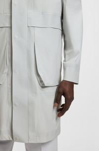 SIZE AND FIT The model wears a size M and is 6'0" tall with a, 36" chest, 31" waist and 35" hips. DETAILS J_Explorer Coat HD - 50541051 With a water-resistant two-way zip and sealed seams, this BOSS Menswear parka jacket will deliver in unpredictable weather. Adjustable hood. Multiple secure pockets. Relaxed fit Hooded collar Fastening top: Zip and button closure Zip chest pockets Pockets top: Zip pockets Unlined Long length Fit back length: 100 cm (39 inches) QUALITY & CARE INSTRUCTIONS Do Not Tumble Dry Machine Wash Cold Gentle very mild professional wet clean Iron Low Heat Quality: 100% Polyamid Do Not Bleach Do Not Dry Clean