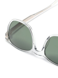 wayfarer-frame tinted sunglasses Highlights - Transparent design - Acetate - Glossy finish - Wayfarer frame - Tinted lenses - Lens decal - Gold-tone hardware - Straight arms - Curved tips - These glasses come with a protective case. Imported Composition Acetate 100% SIZE & FIT Measurement Arm Length 5.7 in(14.5 cm) Bridge Width 0.78 in(2 cm) Lens Diameter 2.04 in(5.2 cm) WIDTH 5.51 in(14 cm)
