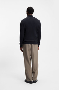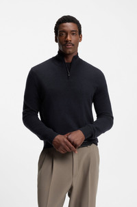 SIZE AND FIT The model wears a size L and is 6'1" tall with a, 36" chest, 29" waist and 37" hips. DETAILS Layer up in luxury with the wool-cashmere blend of this regular-fit BOSS Menswear sweater. Zip collar with contrast inner. Regular fit Neckline: Zip neck Long sleeves Standard length H-Hemarlo - 50549984 QUALITY & CARE INSTRUCTIONS Do Not Bleach Do Not Tumble Dry Material: 90% Virgin wool, 10% Cashmere Iron Medium Heat Dry Clean Only Cold, gentle machine wash; reduced spin speed.