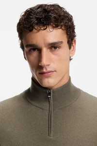 SIZE AND FIT The model wears a size L and is 6'1" tall with a, 37" chest, 29" waist and 35" hips. DETAILS Layer up in luxury with the wool-cashmere blend of this regular-fit BOSS Menswear sweater. Zip collar with contrast inner. Regular fit Neckline: Zip neck Long sleeves Standard length H-Hemarlo - 50549984 QUALITY & CARE INSTRUCTIONS Do Not Bleach Do Not Tumble Dry Material: 90% Virgin wool, 10% Cashmere Iron Medium Heat Dry Clean Only Cold, gentle machine wash; reduced spin speed.