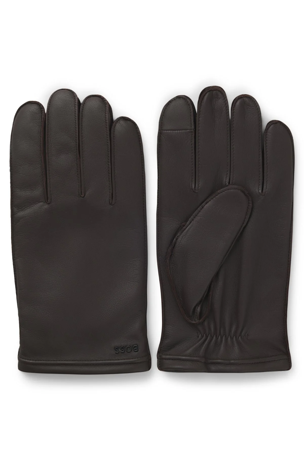DETAILS Crafted in supple leather with soft wool-blend lining, these BOSS Menswear gloves keep hands cozy on the go. Logo lettering. Touchscreen-friendly fingertips. Kranton-ME - 50526680 QUALITY & CARE INSTRUCTIONS Do Not Bleach Do Not Wash Do Not Tumble Dry Material: 100% Lamb leather, Lining: 80% Wool, 20% Polyamid Do Not Iron Reduced Dry Clean