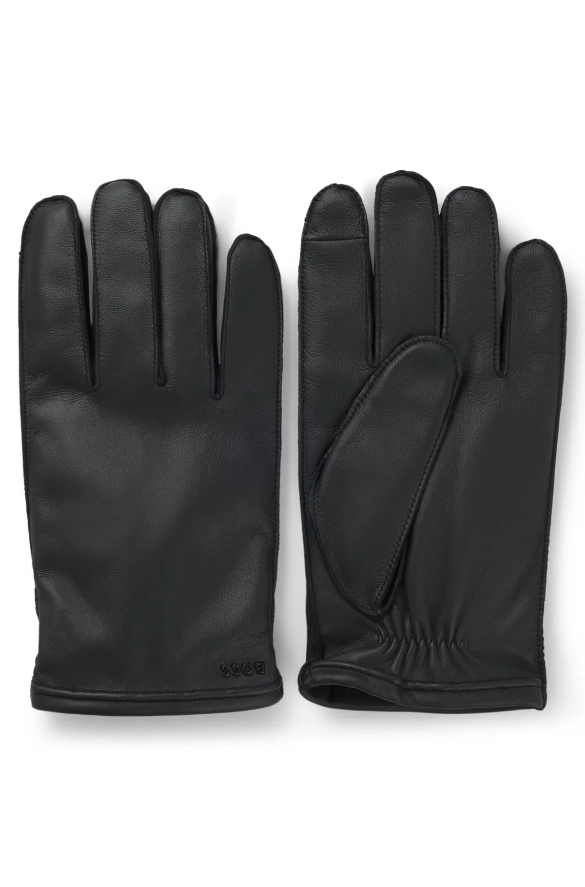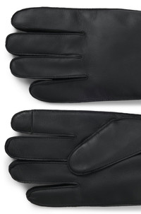 DETAILS Crafted in supple leather with soft wool-blend lining, these BOSS Menswear gloves keep hands cozy on the go. Logo lettering. Touchscreen-friendly fingertips. Kranton-ME - 50526680 QUALITY & CARE INSTRUCTIONS Do Not Bleach Do Not Wash Do Not Tumble Dry Material: 100% Lamb leather, Lining: 80% Wool, 20% Polyamid Do Not Iron Reduced Dry Clean