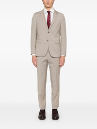 wool suit Highlights - Taupe - Front button fastening - Concealed front fastening - Chest welt pocket - Two side flap pockets Imported Composition Outer: Wool 100% Lining: Viscose 64%, Polyester 36% SIZE & FIT Model measurements Height 6 ft 2 in(1.87 m) Bust/Chest 38.97 in(99 cm) Hips 37.99 in(96.5 cm) Waist 29.52 in(75 cm) FittingInformation Tailored for a slim fit, offering a comfortable fit that sits just away from the body The vented hem offers movement at the rear Made from a midweight non-stretch fabric, this piece offers minimal elasticity when worn