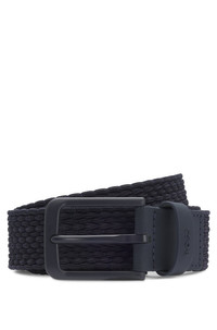 SIZE AND FIT The model wears a size 34 and is 6'2" tall with a, 38" chest, 30" waist and 37" hips. DETAILS Round off casual looks with the woven structure and rich leather trims of this BOSS Menswear belt. Embossed logo on keeper. Made in Italy. For the best fit, we advise ordering a belt one size larger than your waist size. Unlined Hardware finishing: Matte black varnished hardware Exterior embossed logo Vern-WnE-Go_Sz35 - 50558757 QUALITY & CARE INSTRUCTIONS Material: 65% Polypropylene, 35% Rubber, Facing: 100% Cow leather