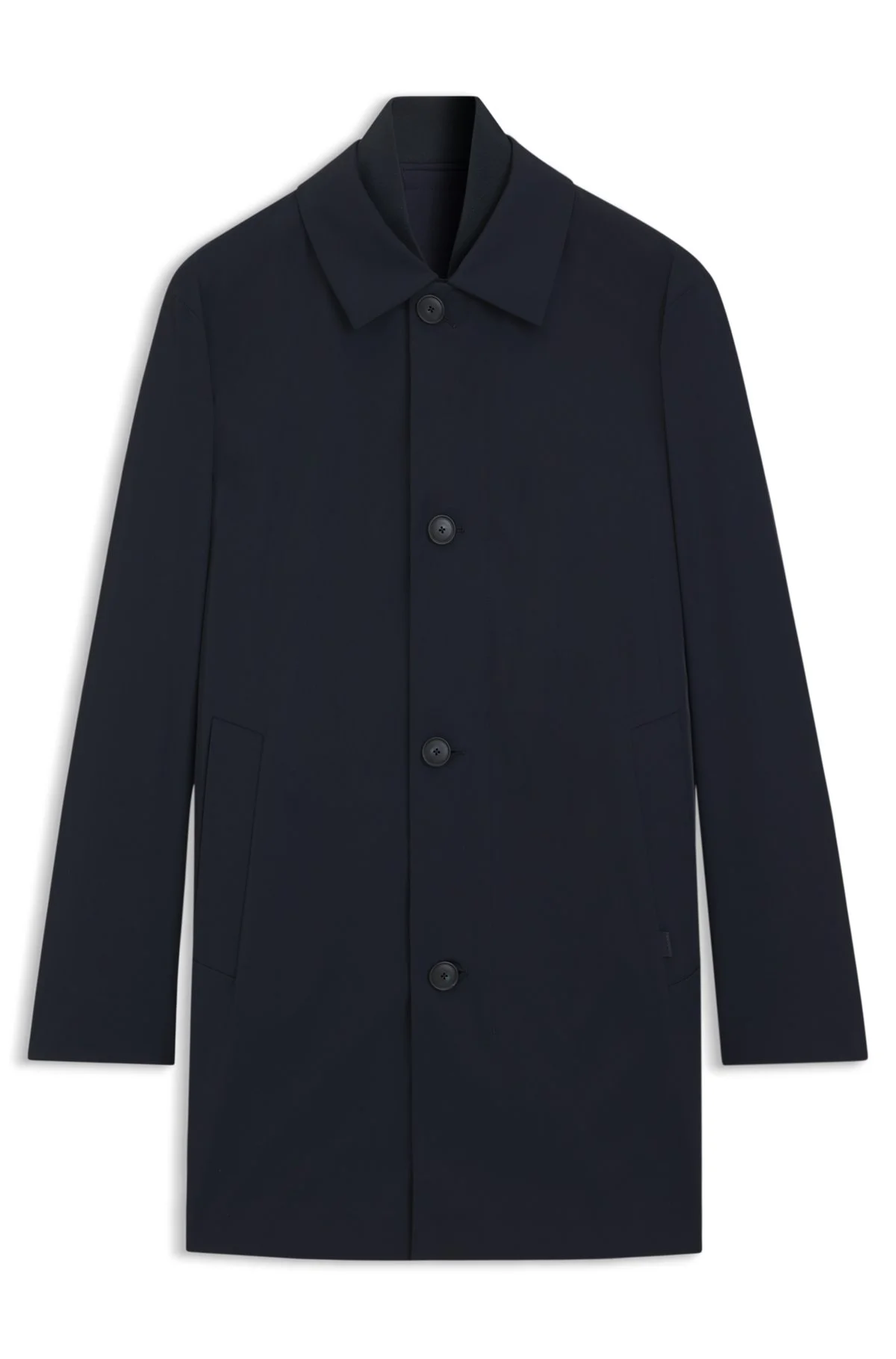 SIZE AND FIT The model wears a size 38R and is 6'1" tall with a, 37" chest, 29" waist and 35" hips. DETAILS With flexible underarms for easy movement, this regular-fit BOSS Menswear coat is essential in rainy weather. Protective stretch neoprene with dependable wrinkle recovery. Regular fit Number of buttons: 4 or more buttons Pockets top: Side-entry pockets Back vent Fully lined P-Jared-3in1-261F - 50554157 QUALITY & CARE INSTRUCTIONS very mild professional wet clean Do Not Wash Material: 90% Polyamid, 10% Elastane, Inner lining: 100% Polyamid, Waistcoat: 100% Polyester, Waistcoat lining: 100% Polyester, undercollar: 88% Polyester, 11% Polyamid, 1% Elastane, Wadding: 100% Polyester Do Not Tumble Dry Do Not Dry Clean Do Not Bleach Do Not Iron