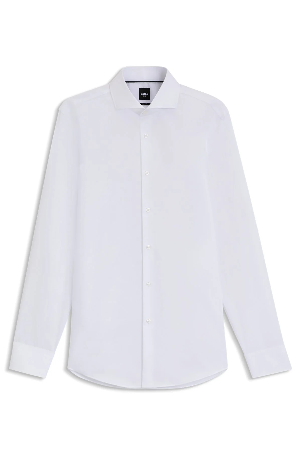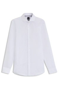 SIZE AND FIT The model wears a size EU:40 and is 6'1" tall with a, 36" chest, 29" waist and 36" hips. DETAILS Cut to a clean slim fit, this BOSS Menswear shirt benefits from wrinkle-resistant finishing for an impeccable look. Soft cotton twill. Slim fit Spread collar Angled cuffs H-HANK-spr-B1-C1-253 - 50550925 QUALITY & CARE INSTRUCTIONS Material: 100% Cotton Machine Wash Warm Dry Clean Only Do Not Bleach Iron Medium Heat Do Not Tumble Dry