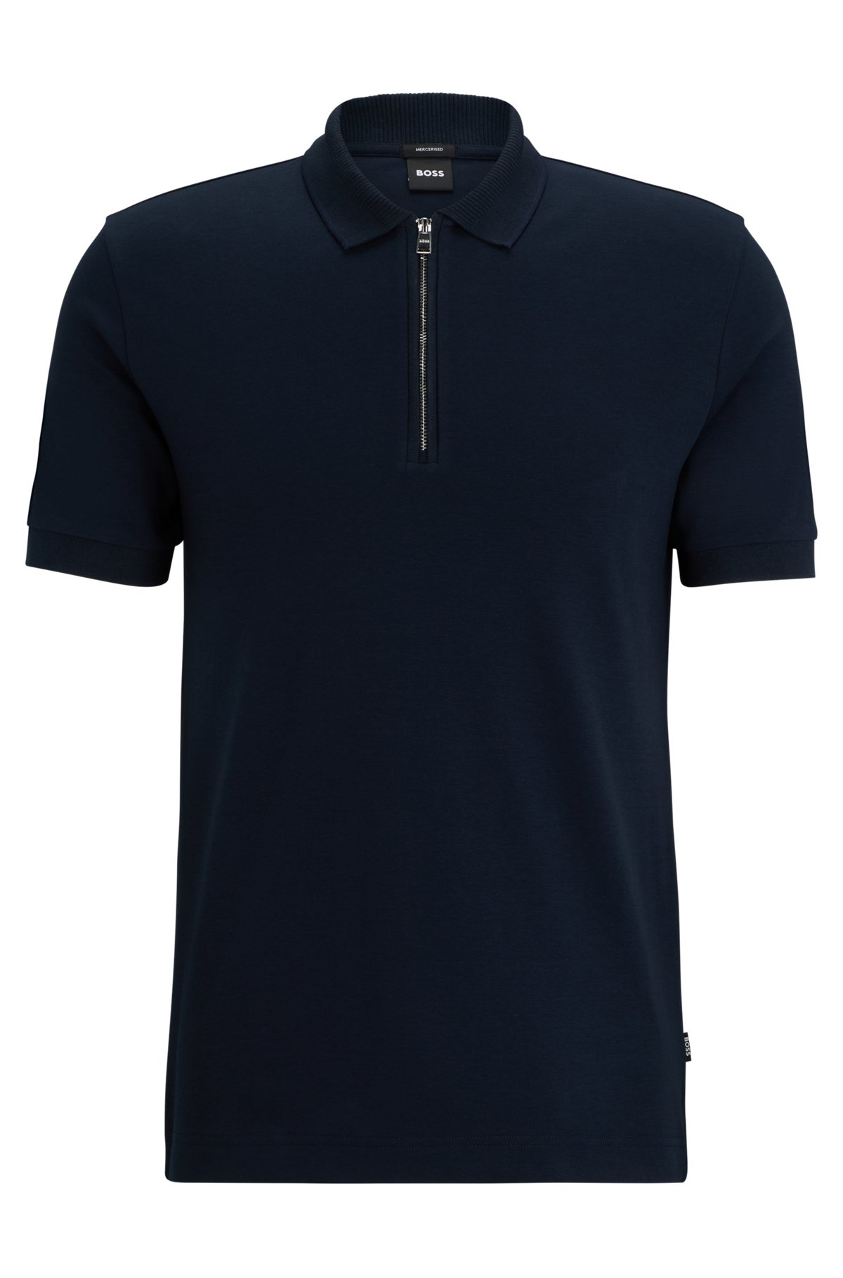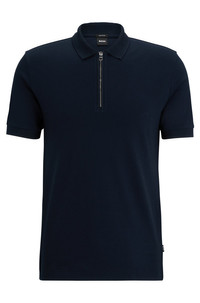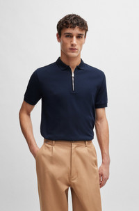 SIZE AND FIT The model wears a size M and is 6'1" tall with a, 37" chest, 29" waist and 37" hips. DETAILS Polston 11 - 50513375 A slim-fitting polo shirt in mercerized interlock fabric with a zip placket, tipping and mixed structures by BOSS Menswear. Slim fit Neckline: Polo collar Fastening top: Zip closure Short sleeves Standard length QUALITY & CARE INSTRUCTIONS Reduced Dry Clean Iron Low Heat Do Not Bleach Do Not Tumble Dry Quality: 100% Cotton Machine Wash Cold Gentle