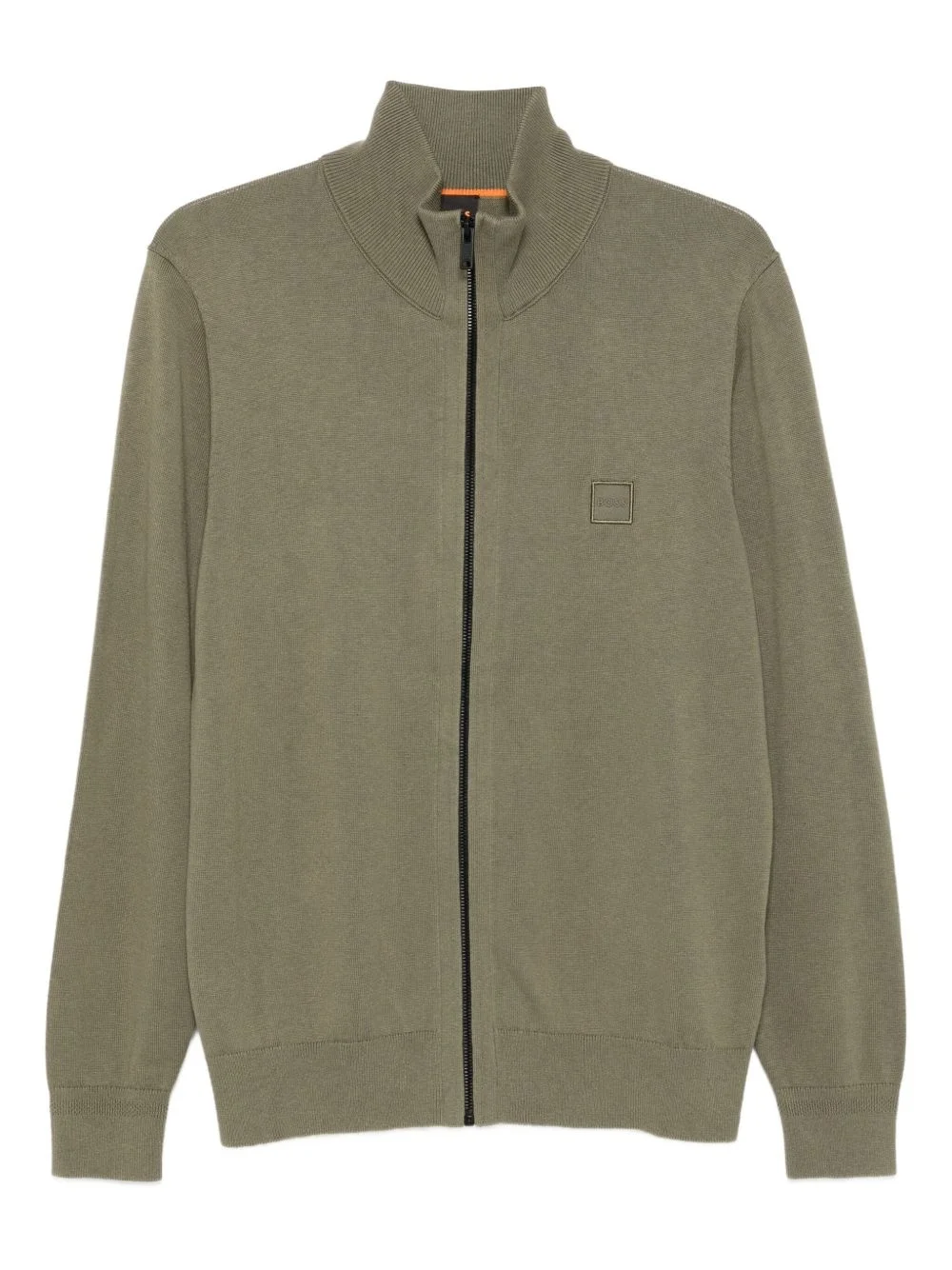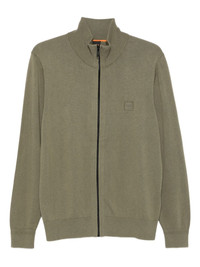 zip-neck embroidered square detail cardigan Highlights - Green - Zip fastening - Long sleeves - Ribbed hem - Embroidered square with logo Imported Composition Cotton 95%, Cashmere 5% Washing instructions Machine Wash