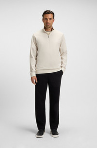 DETAILS H-Stimmann 109 - 50543887 In cotton-rich pique with stretch, this BOSS Menswear sweatshirt has a quarter zip for essential layering. Cut to an easy regular fit. Regular fit Long sleeves Flat-knit cuffs QUALITY & CARE INSTRUCTIONS Do Not Bleach Quality: 78% Cotton, 18% Polyester, 4% Elastane Iron Low Heat Reduced Dry Clean Machine Wash Cold Gentle Do Not Tumble Dry