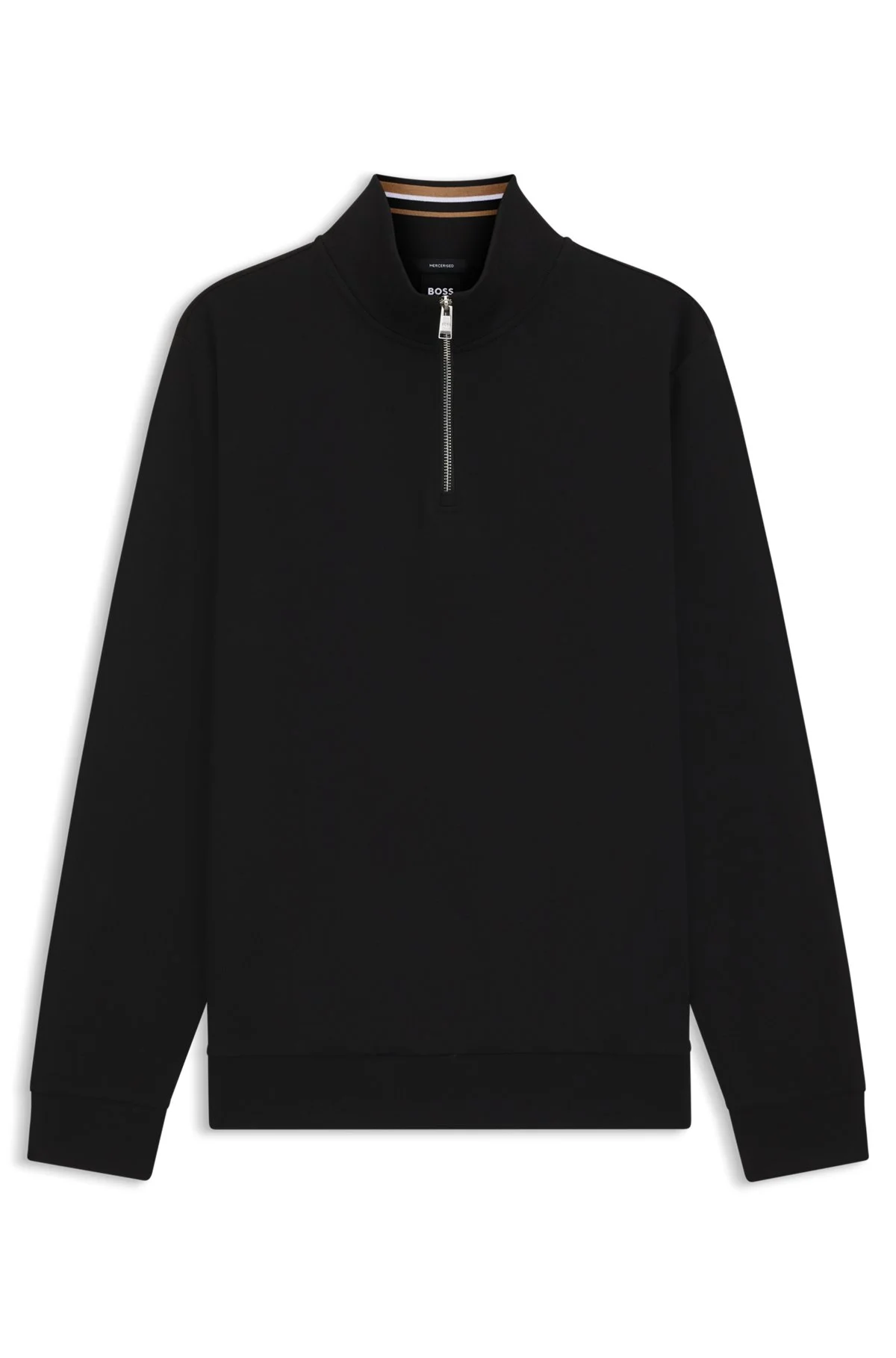 SIZE AND FIT The model wears a size M and is 6'1" tall with a, 36" chest, 29" waist and 36" hips. DETAILS H-Stimmann 109 - 50543887 In cotton-rich pique with stretch, this BOSS Menswear sweatshirt has a quarter zip for essential layering. Cut to an easy regular fit. Regular fit Long sleeves Flat-knit cuffs QUALITY & CARE INSTRUCTIONS Do Not Tumble Dry Iron Low Heat Do Not Bleach Machine Wash Cold Gentle Reduced Dry Clean Quality: 78% Cotton, 18% Polyester, 4% Elastane