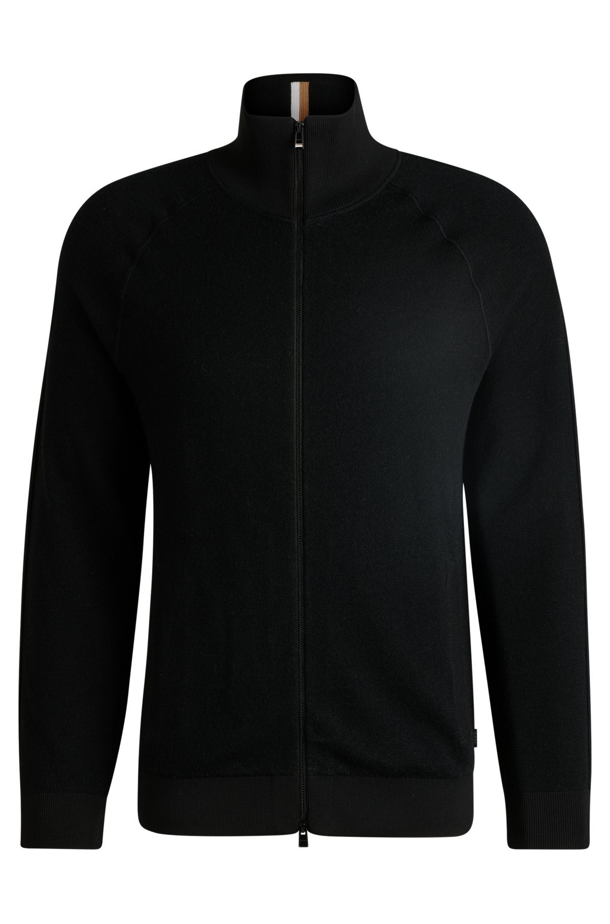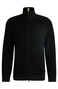 SIZE AND FIT The model wears a size M and is 6'2" tall with a, 39" chest, 30" waist and 36" hips. DETAILS H-Domico_US - 50537083 A cleanly styled cardigan with a two-way zip by BOSS. This regular-fit piece features a signature stripe inside the stand collar. Regular fit Neckline: Zip neck Long sleeves Pockets top: Zip pockets Standard length QUALITY & CARE INSTRUCTIONS Quality: 100% Virgin wool, Ribbing: 100% Polyester Reduced Dry Clean Iron Medium Heat Do Not Tumble Dry Cold, gentle machine wash; reduced spin speed. Do Not Bleach