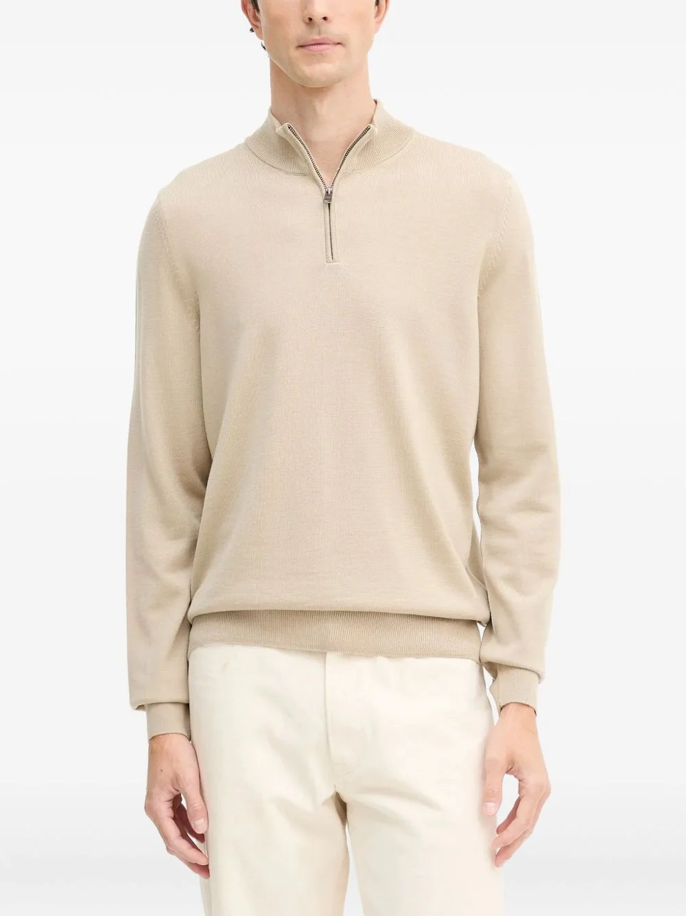 zip-up high-neck knitwear Highlights - Light brown - High neck - Zip fastening - Ribbed cuffs - Long sleeves Imported Composition Fabric 100% SIZE & FIT FittingInformation Designed for a regular fit, offering a comfortable loose fit throughout the body The ribbed hem offers a close, comfortable fit Made with a midweight knit, this piece offers some stretch Washing instructions Read Manufacturer Guidelines