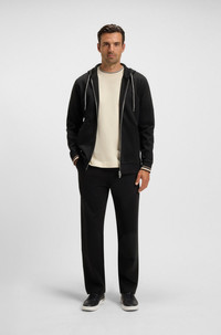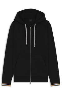 DETAILS C-Spence 109 - 50543427 Cut to a regular fit, this BOSS Menswear zip-up hoodie is a casual essential. Soft cotton. Patterned drawcords and striped cuffs. Regular fit Long sleeves Standard length QUALITY & CARE INSTRUCTIONS Reduced Dry Clean Machine Wash Cold Gentle Quality: 78% Cotton, 18% Polyester, 4% Elastane Do Not Tumble Dry Do Not Bleach Iron Low Heat