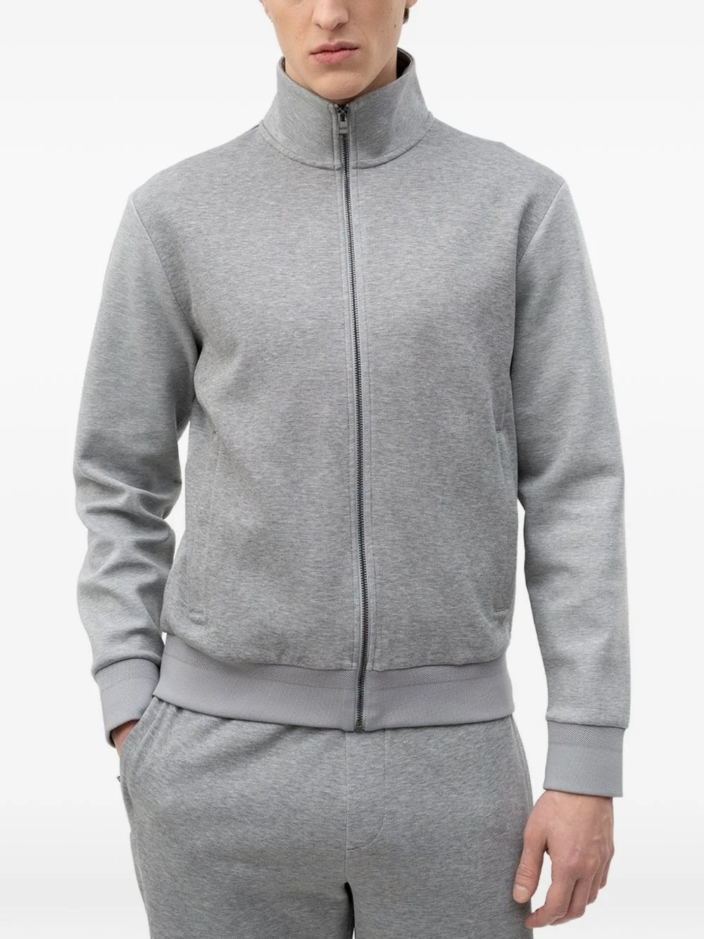 zip-up jacket Highlights - Grey - Zip fastening - Welt pockets - Ribbed hem and cuffs - High neck Imported Composition Fabric 100% Washing instructions Machine Wash