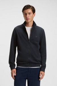 SIZE AND FIT The model wears a size M and is 6'2" tall with a, 38" chest, 31" waist and 38" hips. DETAILS Zestart - 50511709 A zip-up jacket by BOSS Menswear. Featuring a logo badge, this regular-fit layer is crafted in French terry cotton with stitched details. Regular fit Fastening top: Zip closure Pockets top: Side-entry pockets Ribbed cuffs QUALITY & CARE INSTRUCTIONS Machine Wash Cold Gentle Do Not Bleach Quality: 100% Cotton Do Not Dry Clean Iron Low Heat Do Not Tumble Dry