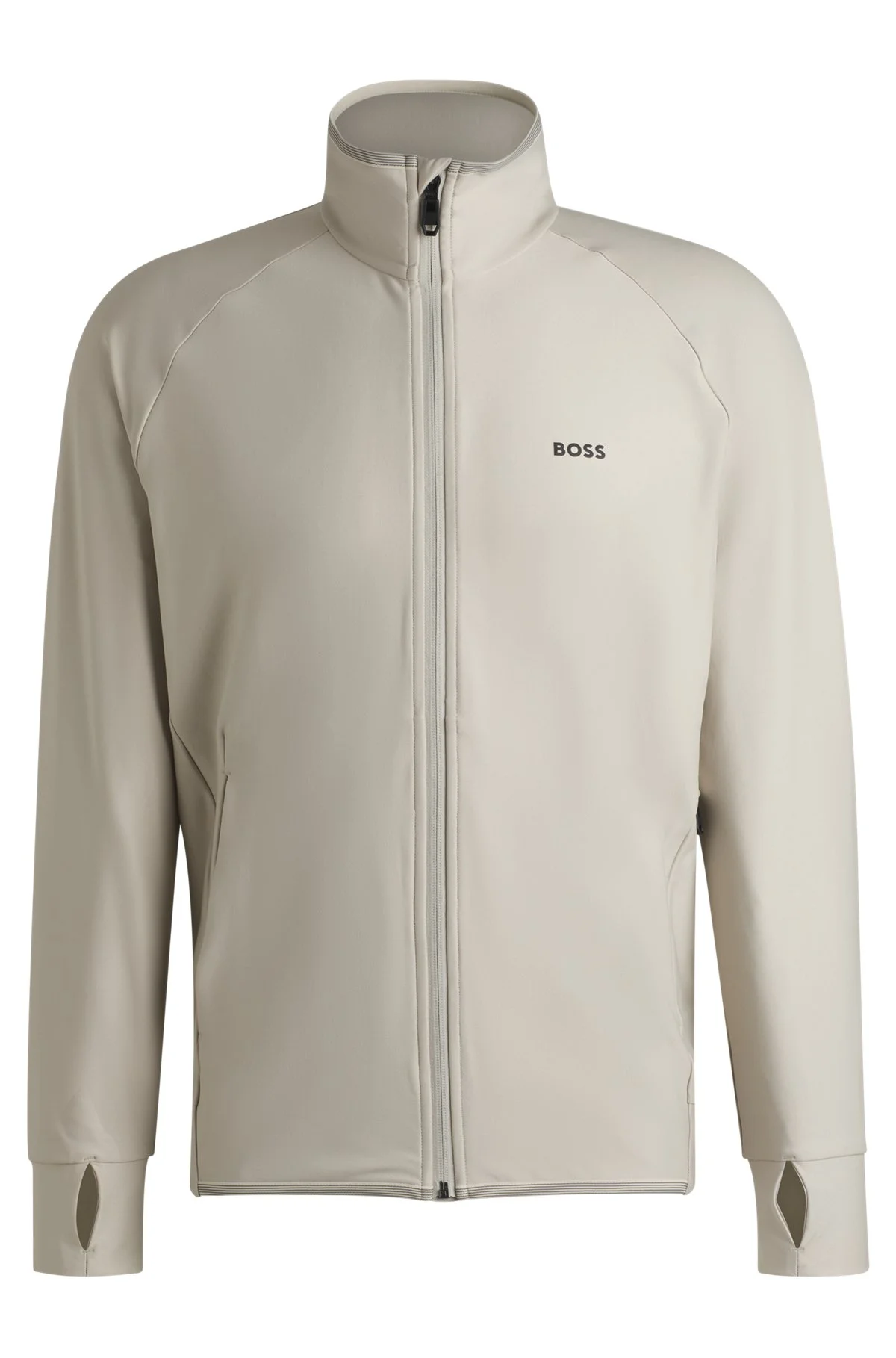 SIZE AND FIT The model wears a size M and is 6'2" tall with a, 38" chest, 31" waist and 37" hips. DETAILS Sicon Active - 50517747 A zip-up sweatshirt by BOSS Menswear, cut to a straight fit in stretch interlock fabric with odor control and featuring a decorative reflective logo. Regular fit Neckline: Stand collar Fastening top: Zip closure Pockets top: Side-entry pockets Long sleeves Self fabric cuffs Standard length QUALITY & CARE INSTRUCTIONS Quality: 83% Polyester, 17% Elastane Do Not Tumble Dry Do Not Bleach Machine Wash Cold Gentle Iron Low Heat Do Not Dry Clean
