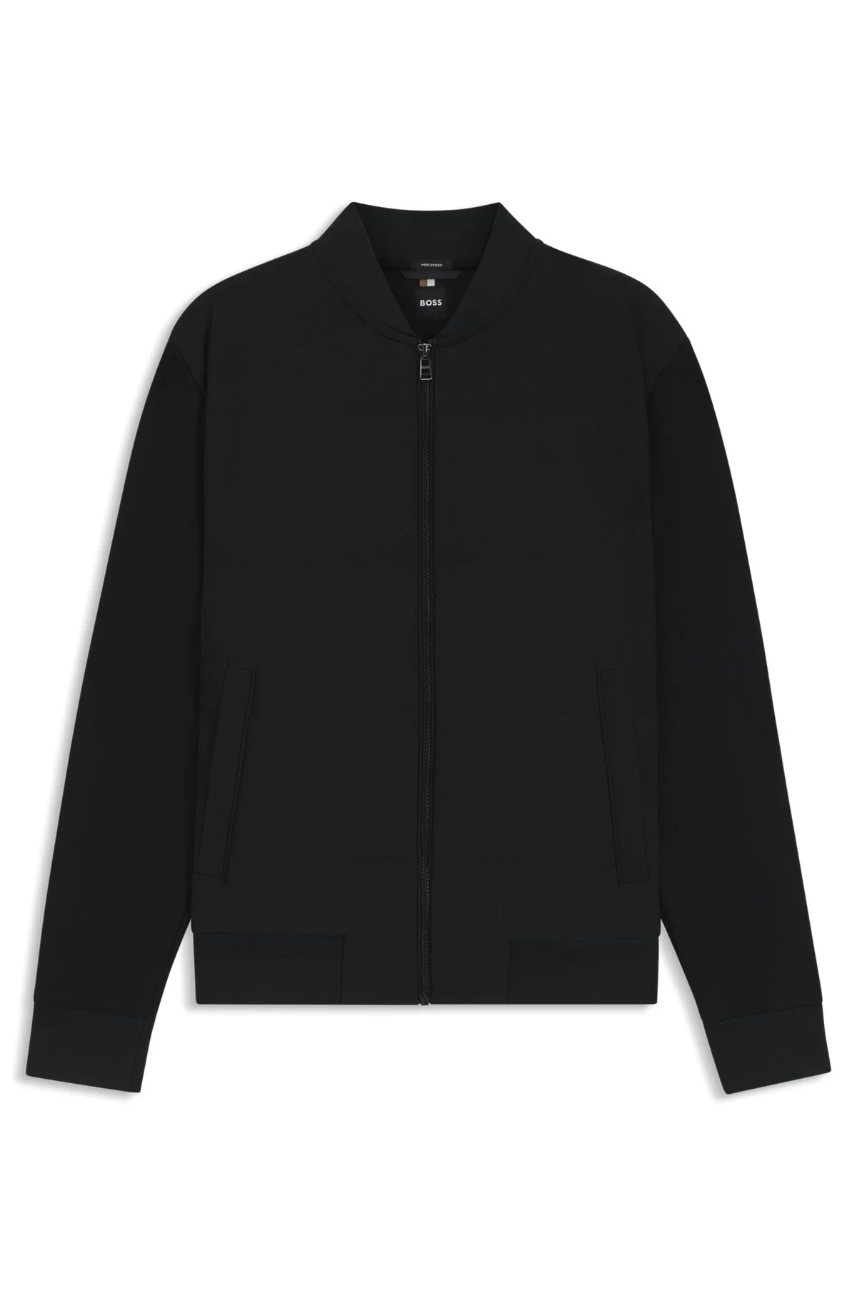 SIZE AND FIT The model wears a size L and is 6'2" tall with a, 36" chest, 28" waist and 37" hips. DETAILS H-Skiles 100 - 50532767 In a straight fit for easy layering, this BOSS Menswear zip-up sweatshirt will become a daily favorite. Mercerized cotton with contrasting padded front. Regular fit Fastening top: Zip closure Long sleeves Standard length QUALITY & CARE INSTRUCTIONS Do Not Tumble Dry Machine Wash Cold Gentle Quality: 85% Cotton, 15% Polyester, Lining: 100% Polyester, Components: 100% Elastomultiester, Wadding: 100% Polyester Iron Low Heat Do Not Bleach Do Not Dry Clean
