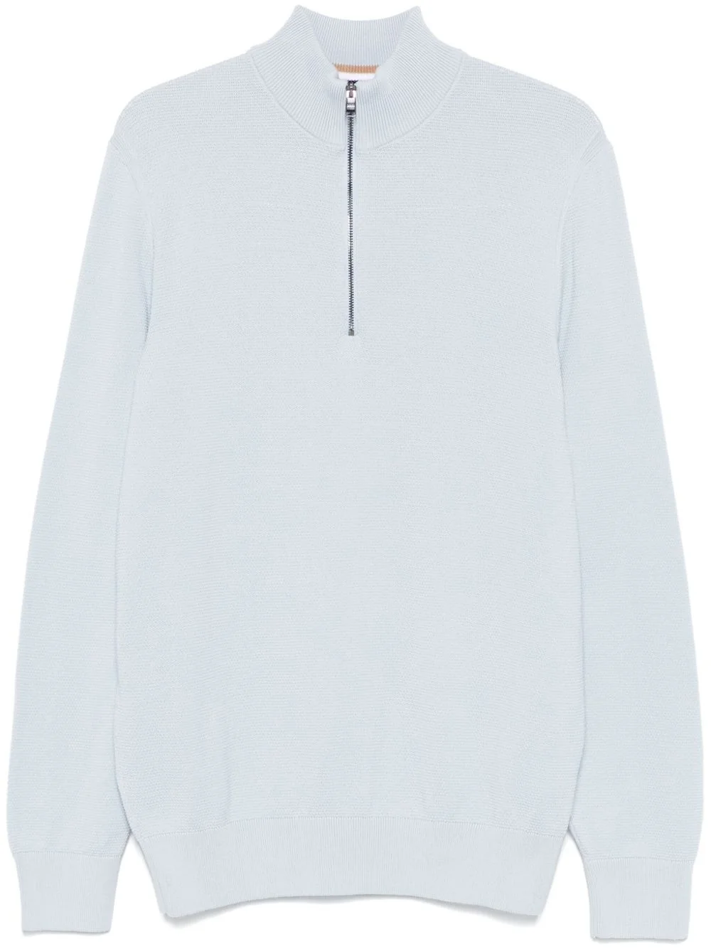 zipped cotton sweater Highlights - Light blue Imported Composition Cotton 100% SIZE & FIT FittingInformation Designed for a regular fit, offering a comfortable loose fit throughout the body The ribbed hem offers a close, comfortable fit Made with a midweight knit, this piece offers some stretch
