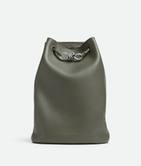Backpack in silky calf leather with signature knot detail and sliding shoulder straps. Product Details - Silky calfskin backpack with sliding shoulder straps - Intrecciato leather internal zipped pocket - Lining: Bonded suede - Color: Pickle - Hardware: Vintage Silver - Made in: Italy - Product code: 856159V4O913297 Material - Material: Calfskin Size & Fit - Height: 38 cm (15.0") - Width: 25 cm (9.8") - Depth: 13 cm (5.1") - Fits iPhone 16 Pro Max, a credit card case, airpods and keys.