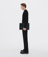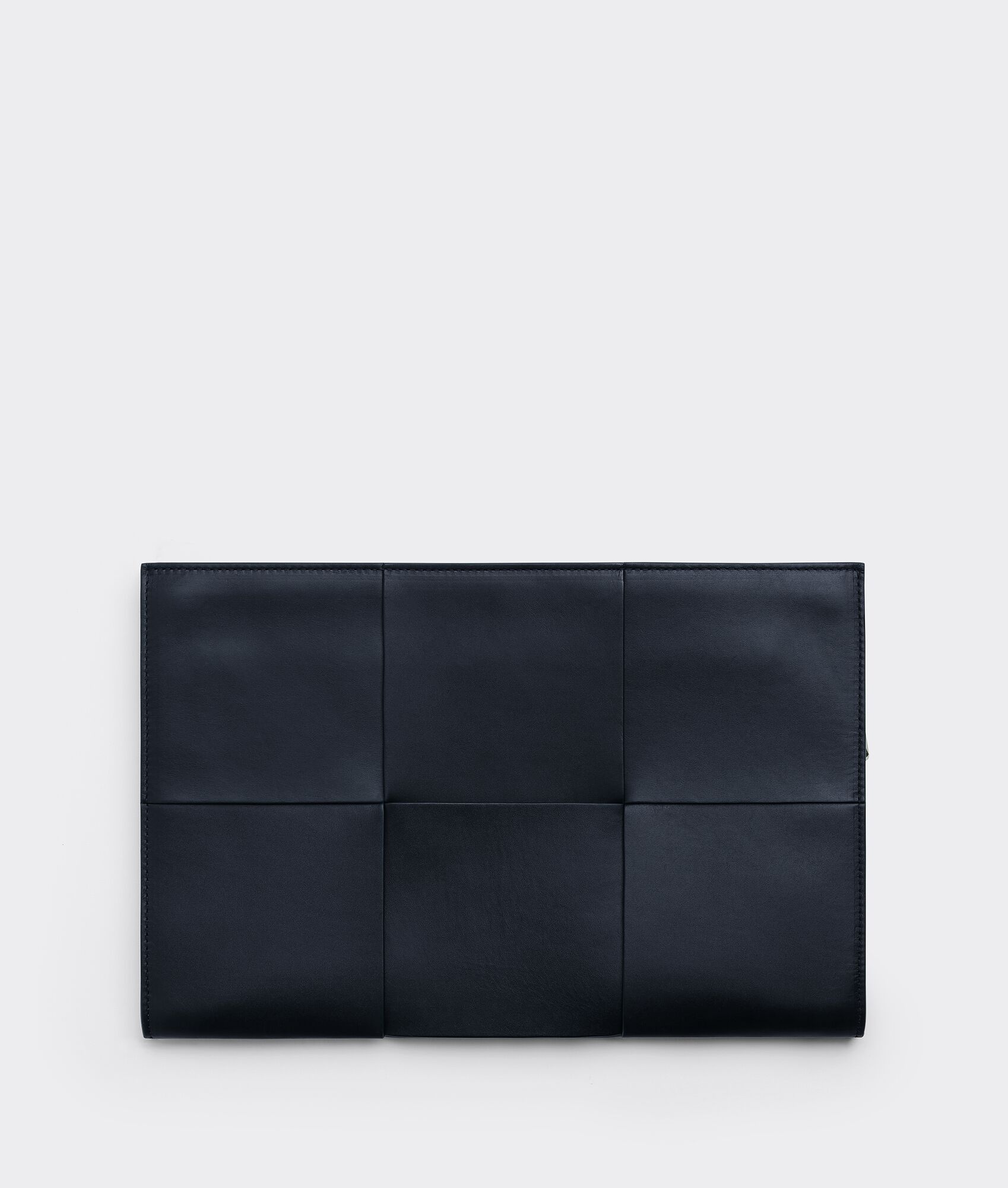 • Intreccio leather document case • Single interior zipped pocket • Zip closure Material: 100% Calfskin • Lining: Bonded suede • Color: Space • Hardware: Silver finish • Height: 24 cm | 9.4" • Width: 36 cm | 14.2" • Depth: 2.5 cm | 1" Made in: Italy
