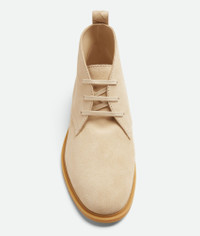 Lace-up ankle trunk realized in rugged suede with Intrecciato leather detailing. Product Details - Rugged suede lace-up ankle trunk - Intrecciato leather backloop - Lining: Calfskin - Color: Tufo - Rubber outsole - Made in: Italy - Product code: 855168V4QN09707 Material - Material: Calfskin
