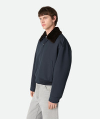 Bomber jacket in silk and cotton twill, featuring a detachable shearling collar. Product Details - Silk and cotton twill bomber jacket - Detachable shearling collar - Zipper closure - Lined - Regular fit - Color: Abyss - Made in: Italy - Product code: 833838V5PT04140 Material - Material: 57% cotton, 43% silk Size & Fit - Model is 190 cm | 6'2" and is wearing a Bottega Veneta size 46